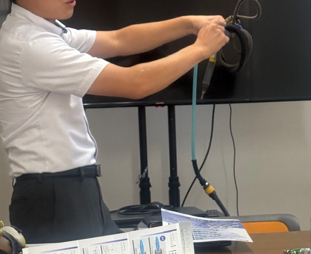 実際に製品を持ってきて頂き、どのように取り扱うのか、どのような製品なのか等詳しく教えて頂きました。