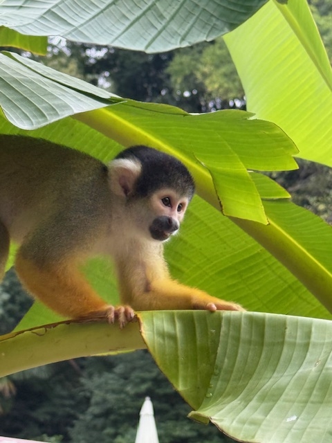 一定の時間帯だけリスザルを放し飼いにするんですけど、そのタイミングで真隣にリスザルがやってきてくれました!