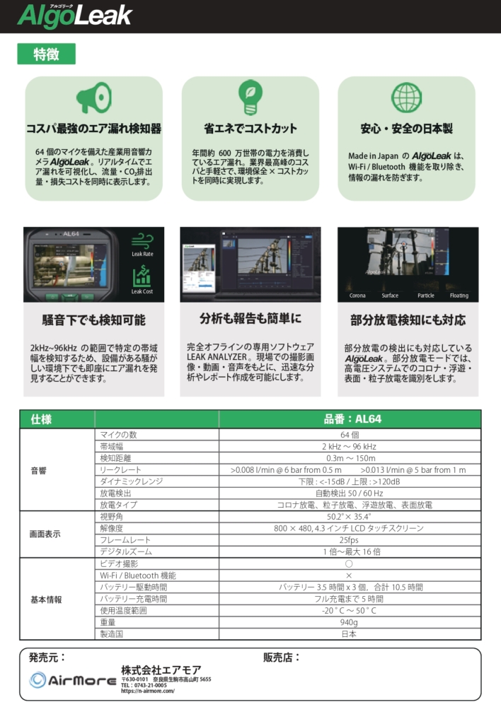 『エアモア エア漏れ検知器 アルゴリーク AL64』