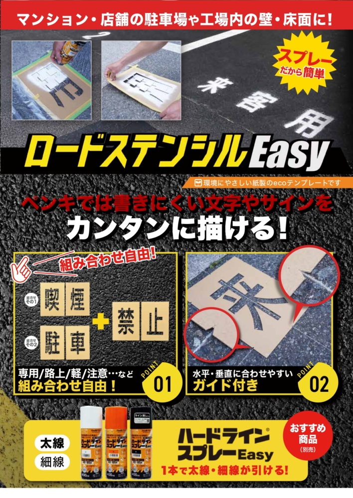 そんなお困りにピッタリなのが、この “紙製ステンシル+スプレーで描ける” ロードステンシルEasyとなっております
