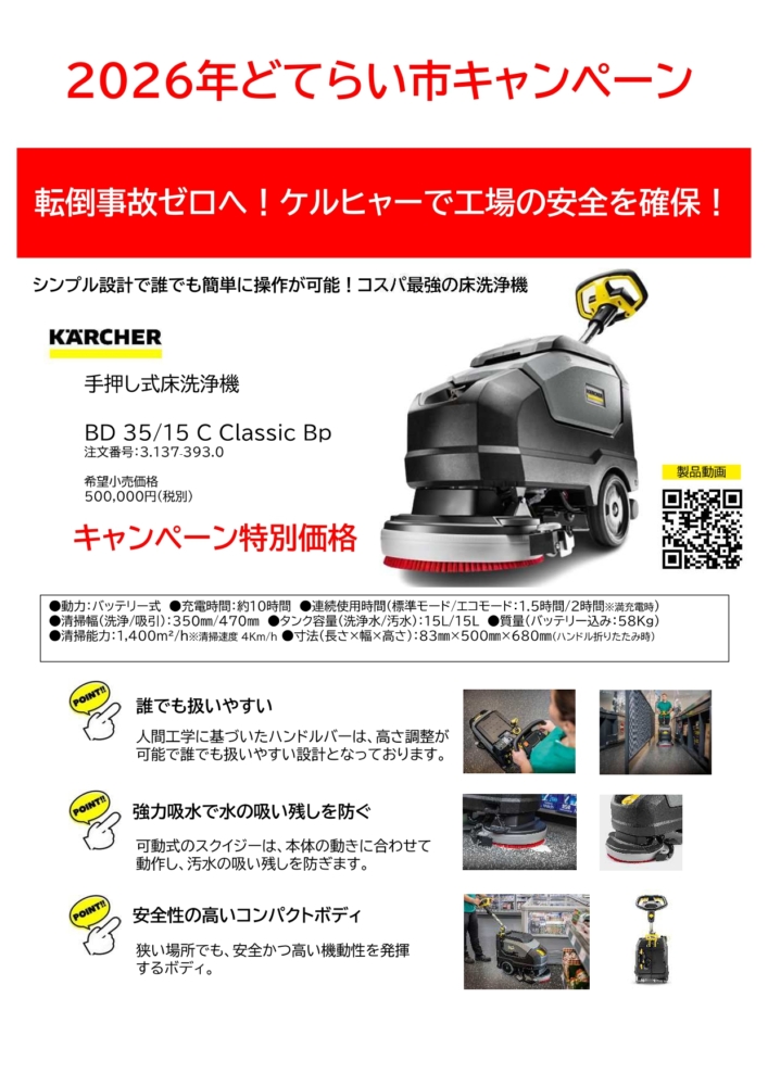 ケルヒャーの床洗浄機を、ぜひ会場でご確認ください^^